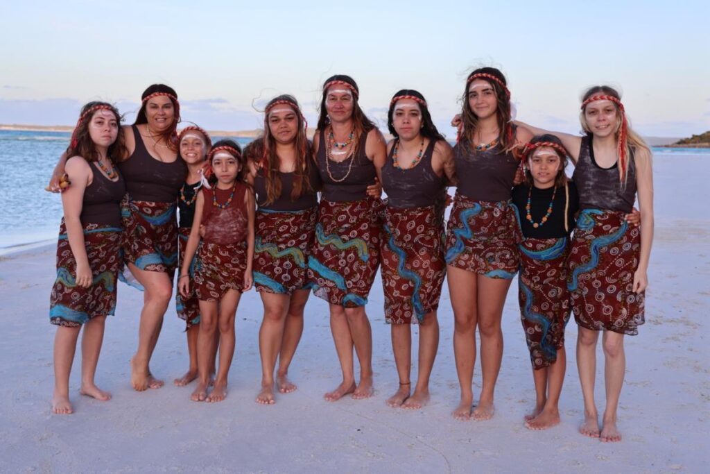 Artist Statement: Wardarn Dreaming is a culturally rich and immersive live performance celebrating the connection of Noongar people to the ocean. Meaning “dreaming of the ocean, our connection to it, the spirit of the ocean, and all that it provides for us” this performance is presented by Karla Hart and Kwarbah Djookian (Beautiful Sisters). It brings together powerful dance, song, a skilled didgeridoo player, performers adorned with body paint, and an evocative ocean soundscape with language chanting, creating a deeply engaging cultural experience on Cottesloe Beach for all visitors to Sculpture by the Sea.